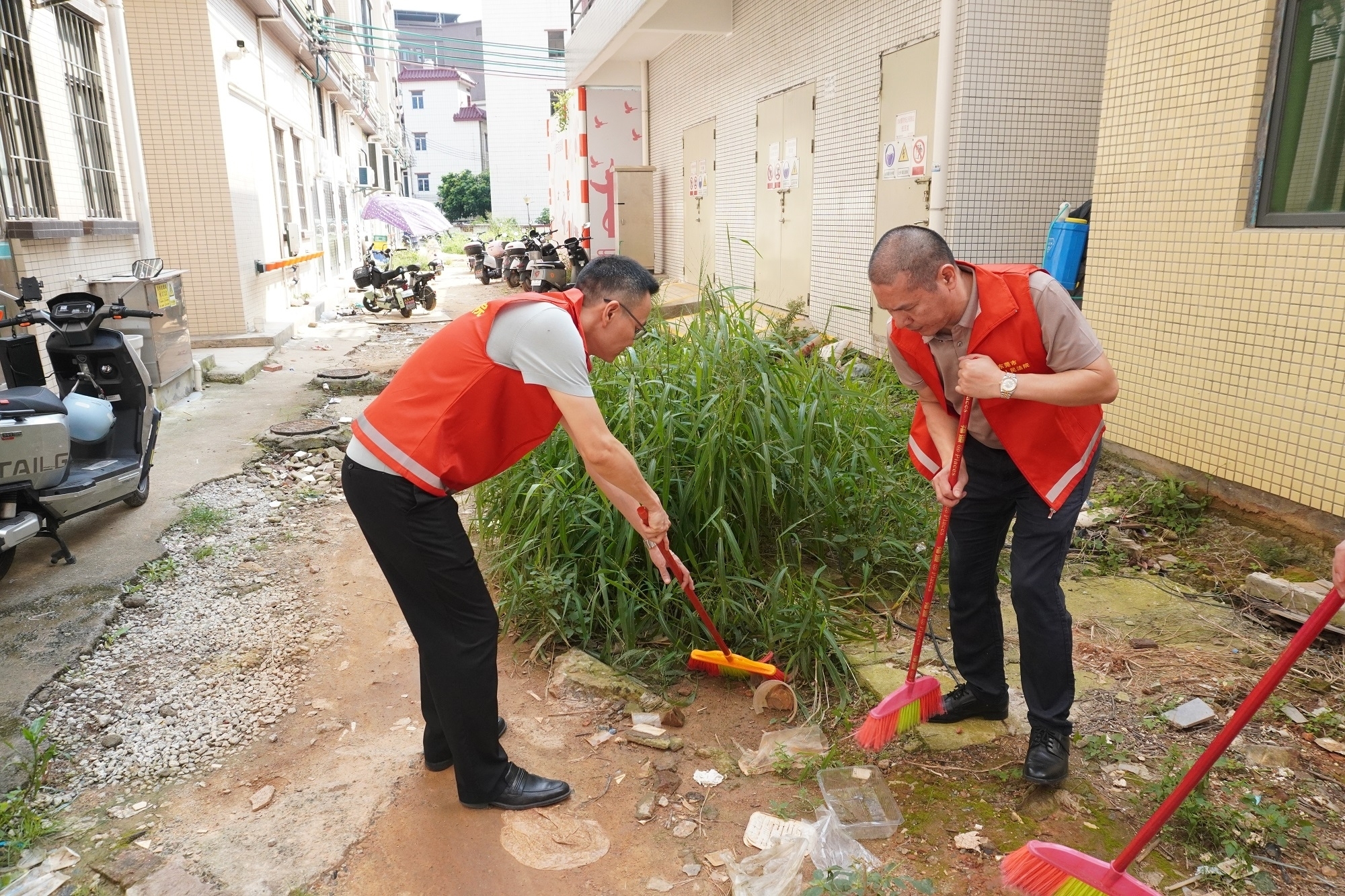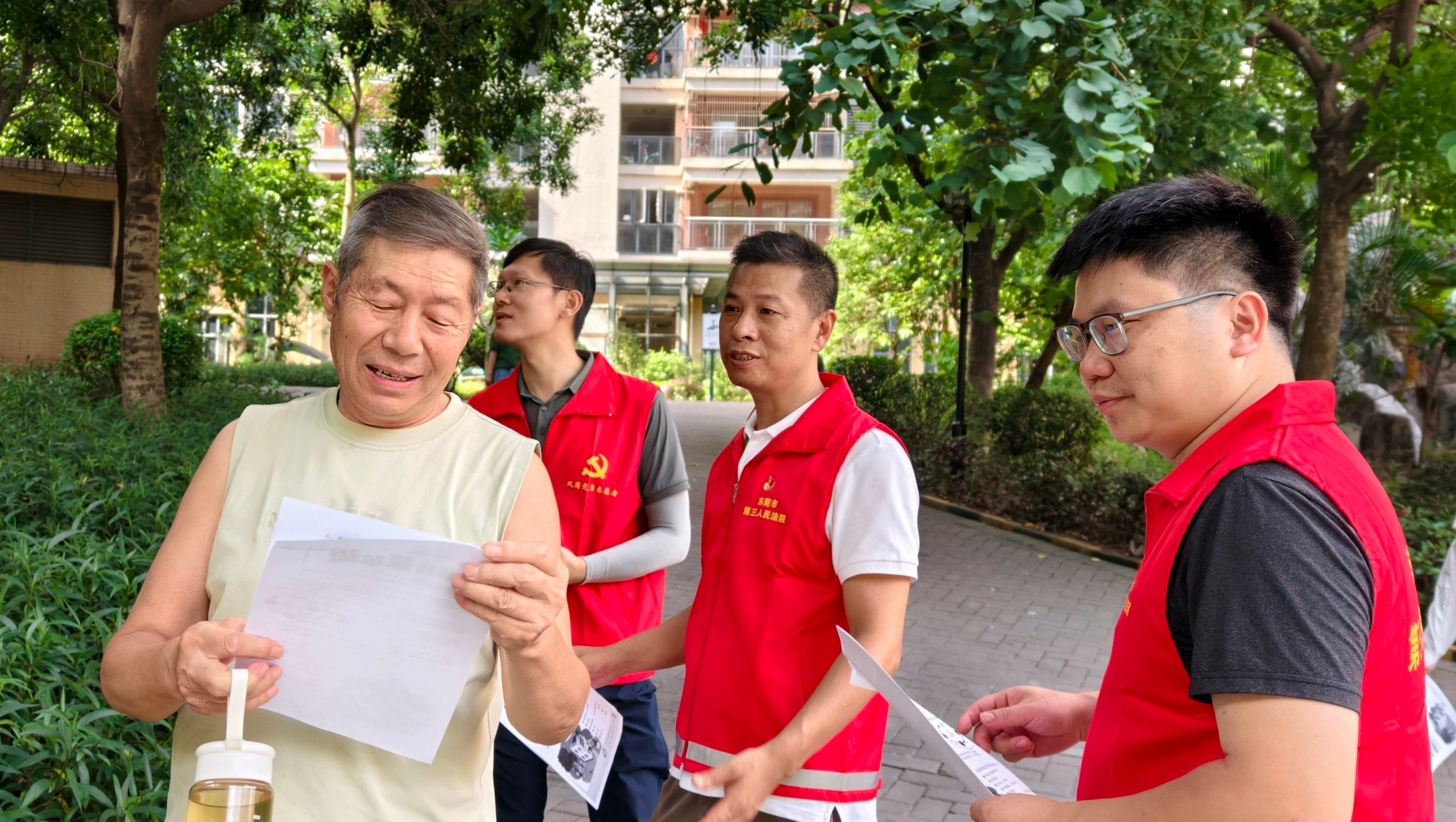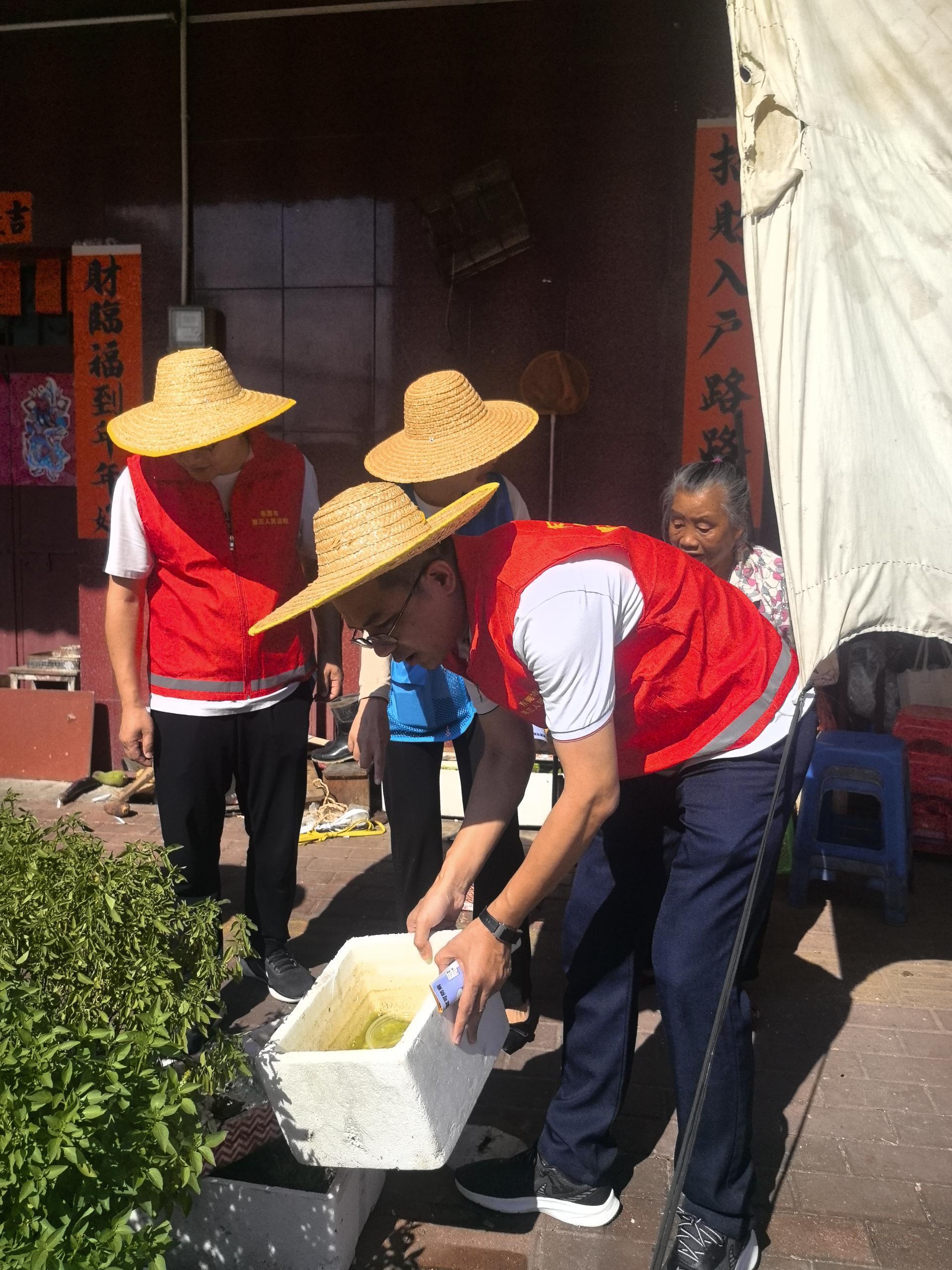 7月下旬开始,东莞第三法院积极响应号召,组织20个党支部100余名党员干警带头前往凤岗镇黄洞村、常平镇漱旧村、塘厦镇诸佛岭村等20个结对村,下沉一线参与蚊媒防治工作,以实际行动助力结对村织密蚊媒防控网。