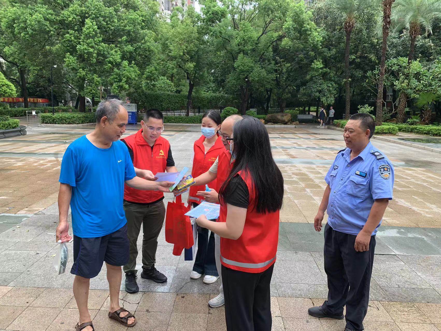 党员干警选择在周末或晚上的时间,与村镇入户工作队开展灭蚊宣讲、排查蚊虫易孽生点、协助清理积水等工作。党员干警向当地居民住户发放宣传手册、驱蚊用品,讲解基孔肯雅热、登革热等虫媒传染病的危害和预防知识,提醒群众及时清理积水。