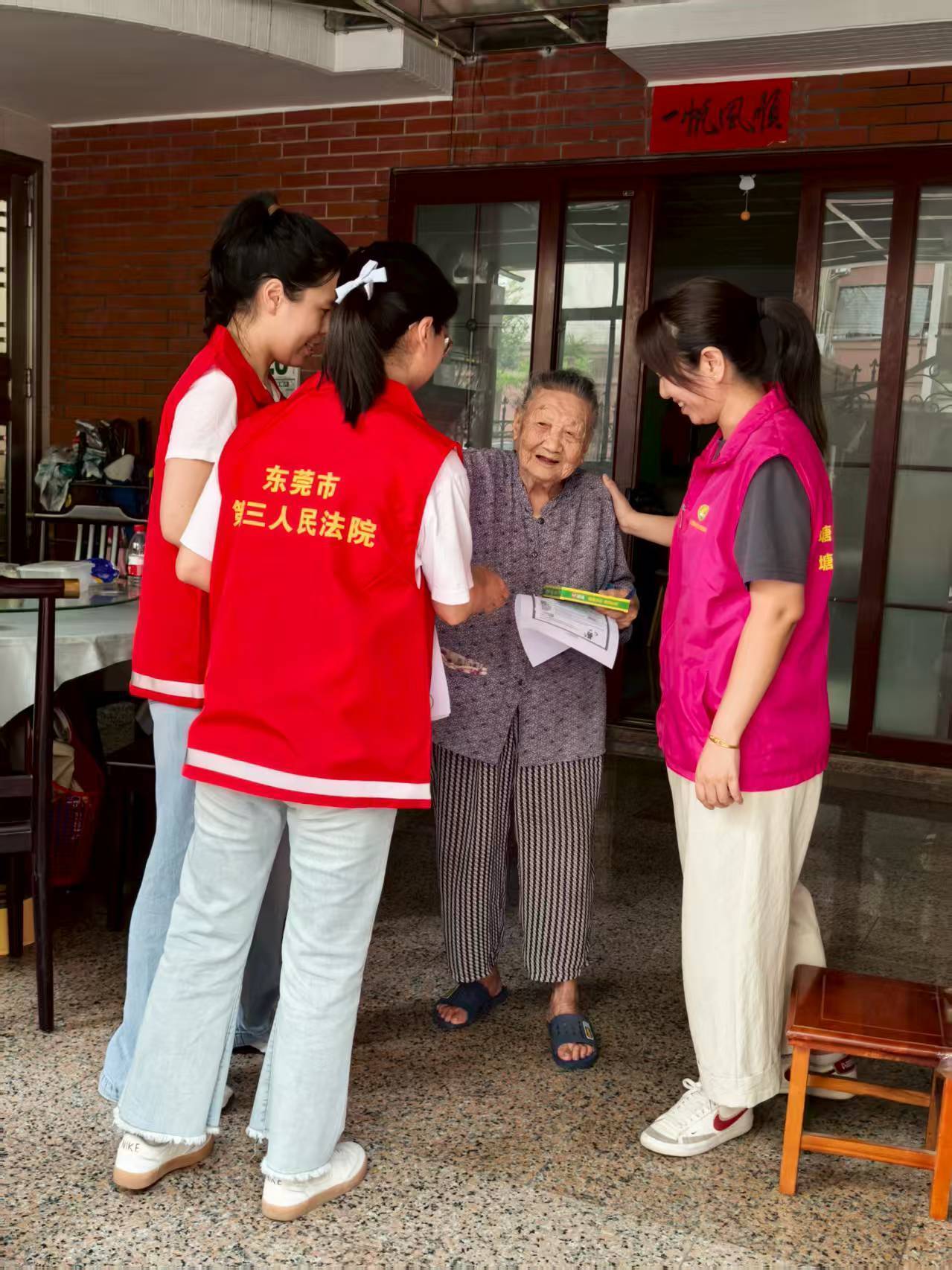 “阿姨,这盘蚊香给你,村里喷药灭蚊时,家里要点蚊香。”东莞第三法院党员干警来到居民家中叮嘱防蚊事项。